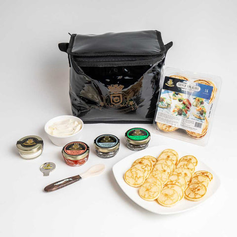Make an impact this season when you give an awe-inspiring caviar gift basket. Your gift will speak volumes about prestige and excellence. The gift set will get packed inside one of our luxurious caviar cooler bags which is then shipped in an insulated box to guarantee its freshness upon arrival.