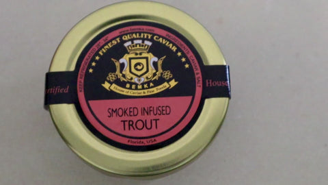 Our smoke infused trout caviar is made from fresh trout roe, seasoned with sea salt and lightly smoked in order to produce one of the most incredible palate pleasers out there. The roe is processed with the perfect amount of hickory smoke so that it does not overpower the natural flavor of the eggs, but still leaves a lasting impression on the palette. The elegant smokiness of this product goes great on appetizers, canapés, and is great for eating right off the spoon, adding flavor to sauces and topping fresh oysters or seafood dishes.